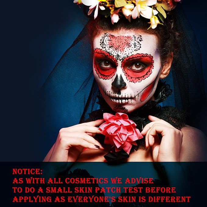 - ✔Professional Clown Halloween Skull Zombie Skeleton Makeup Face Paint --- 1.06Oz/30g for our black face paint,meet your need for Clown Skull Skeleton Makeup with full coverage.It infused with waterproof and sweatproof formula,don't come off with sweat and rain.The nice consistency makes it blend into the skin easily with a brush, sponge or finger.It may need some time to dry.To avoid smearing when put on,we advise use the setting powder or setting spray before applying the face body pain