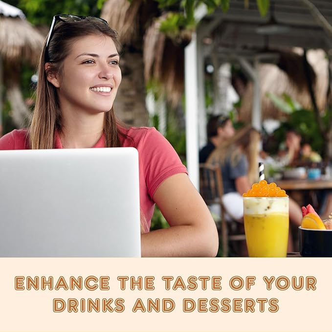 - ๐๐ง๐ซ๐ข๐๐ก๐๐ ๐๐ข๐ญ๐ก ๐๐ฎ๐ข๐๐ฒ ๐๐จ๐จ๐๐ง๐๐ฌ๐ฌ: The fruit boba pearls are filled with natural and organic Mango goodness. You get a juicy, mouthful taste of Mango with every bite and slurp of your favorite beverages.