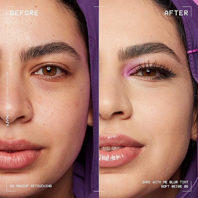 NYX PROFESSIONAL MAKEUP Bare With Me Blur Skin Tint Foundation Make Up with Matcha, Glycerin & Niacinamide - Soft Beige