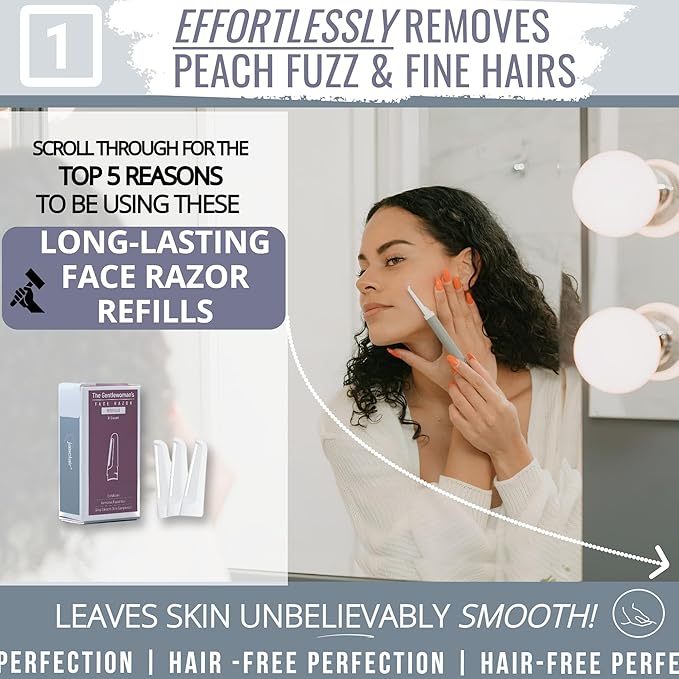 Dermaplaning Refill Blades - 3 Count, Compatible with Gentlewoman’s Face Razors, Smooth and Gentle Exfoliating Facial Razor for Women, Premium Peach Fuzz Removal