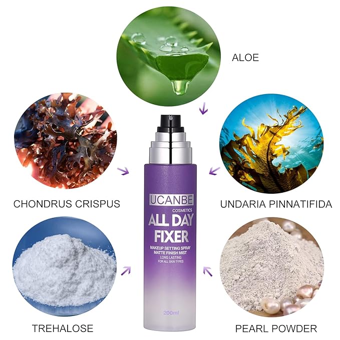 - 2PC SETTING SPRAY for Oily Skin: UCANBE ALL DAY FIXER is a finishing spray for keeping your makeup stays put with matte finish. It contains pearl powder which would help control oil and brightening your face. Airbrush design is easily to prevent from cracking or smudging your make up.