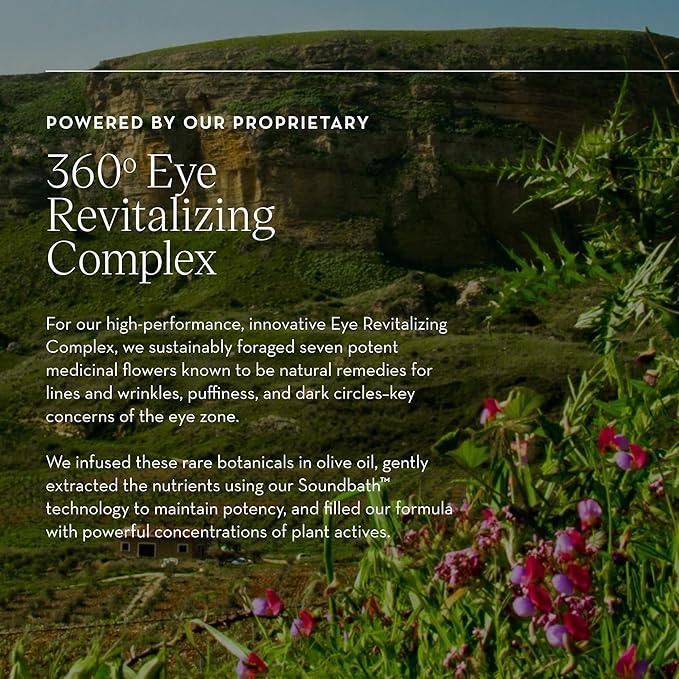 - 360ΒΊ Eye Revitalizing Complex: A proprietary blend of 14 wild-foraged plants, including artichoke and dandelion, to lift, awaken, and revitalize the extended eye area.