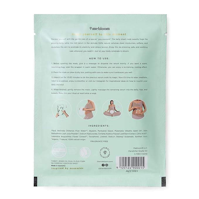 3 x Feuchtigkeitsspendende Bauchtuchmaske - hilft gegen Dehnungsstreifen - wirkungsvolle Mischung aus natürlichen und biologischen Pflanzenstoffen