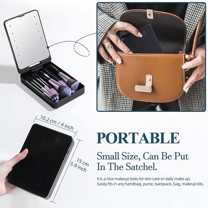 - 🎒Portable Design – An icon featuring a compact, folding makeup mirror nestled inside a small suitcase or handbag, symbolizing its portability and ease of carrying during travel.