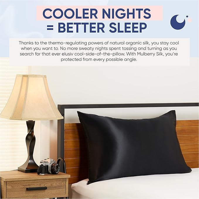 - BETTER & COOLER SLEEP: The temperature regulating properties of the Blissy silk pillowcase allow you to keep cool at all times during the night without the discomfort associated with fluctuating temperature and the constant tossing and turning for a restful night sleep.