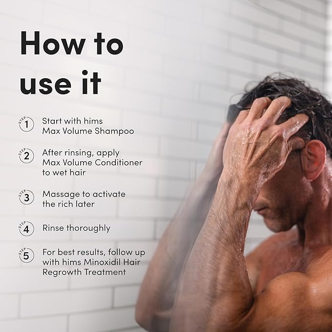 - Follicle Boosting Ingredients: A hydrating conditioner for men that visibly lifts limp hair with a follicle-boosting blend of biotin, argan oil, and Biovolume 128