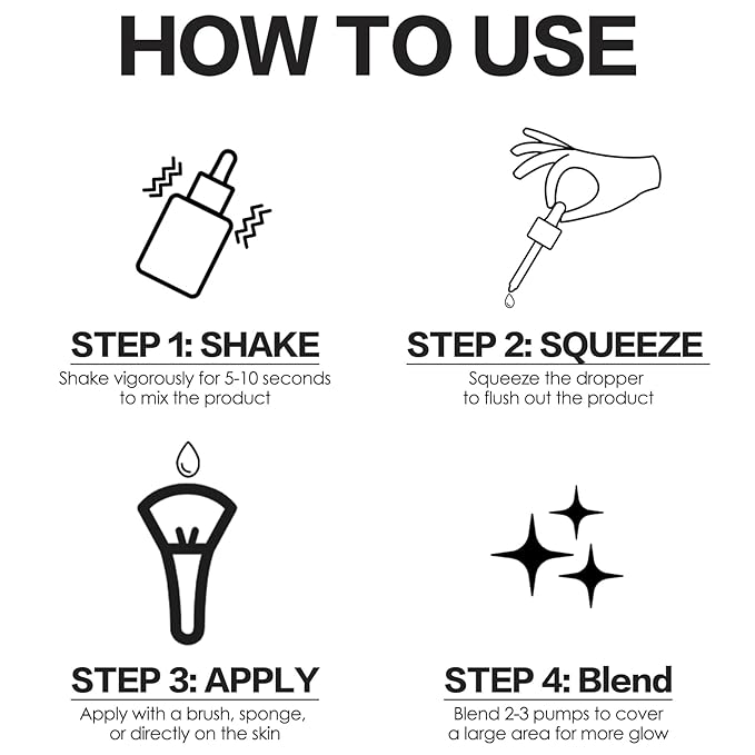- HOW TO USE - Apply the liquid highlighter alone or add some drops to other makeup products to customize your glow complexion. Notes: Please wait a moment to let it dry completely.