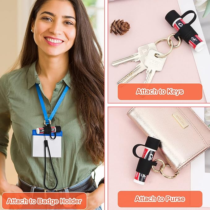 - 👍 【No More Losing Lip Balm】- Easy to use and attach the keychain chapstick holder to everywhere within your reach. No more digging through your bag to find chapstick. And no more worrying about losing your lip balm.