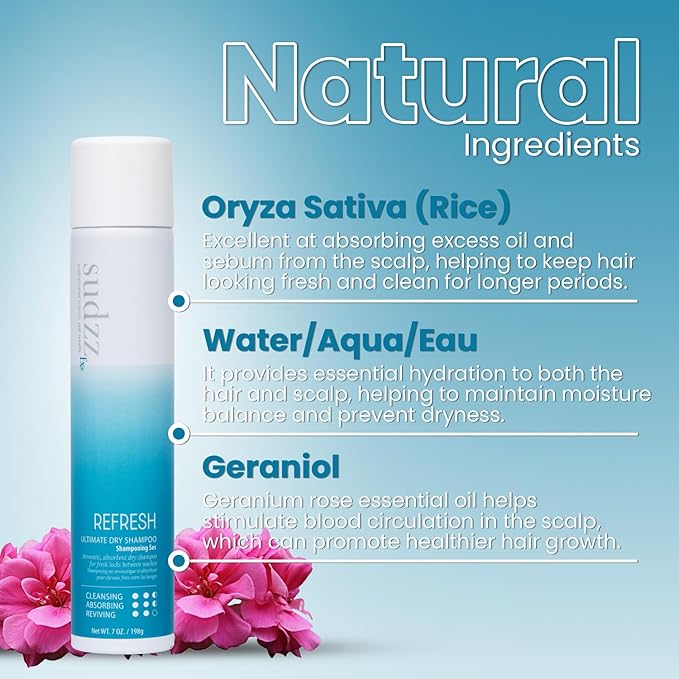 SUDZZFX Refresh Ultimate Dry Shampoo for Women - Waterless Shampoo - for Most Hair Types - Absorbs Excess Oil - Adds Light Volume & Texture - Color Protection
