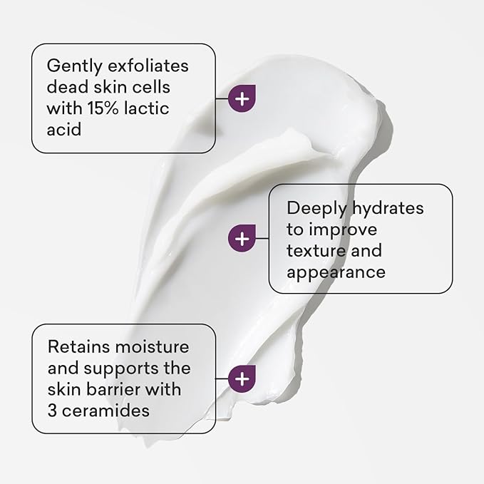 - Our formula: AmLactin’s crepe skin firming cream uses 15% lactic acid, a gentle yet effective AHA, to exfoliate dead skin cells and promote skin cell turnover; ceramides retain moisture and support the skin barrier to restore natural radiance