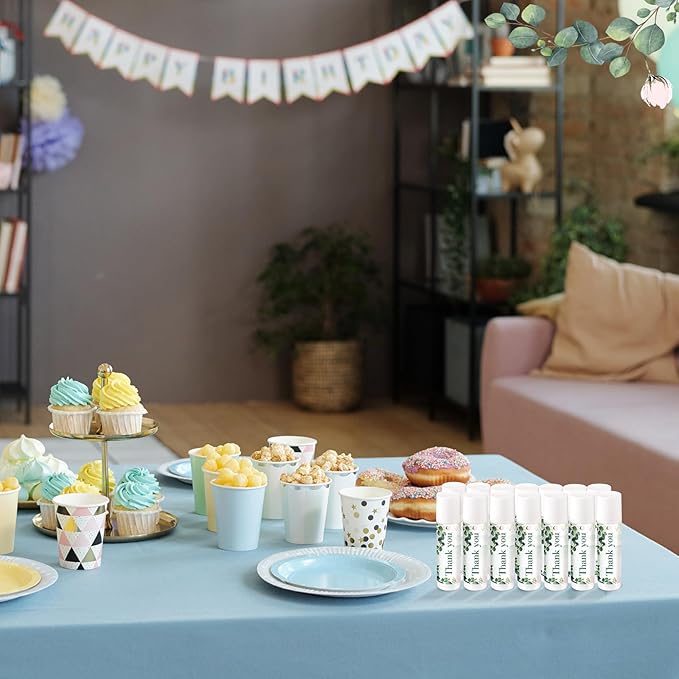 - Sweet Gift Choice: these lip balms printed with the words "Thank You for celebrating with us" and green eucalyptus leaves, suitable as wedding favors, baby shower gifts, gender reveal party gifts, etc, and surprise and delight your guests with this thoughtful gift