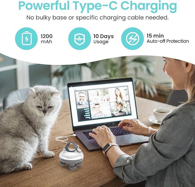 - 🏆【Upgrade Design, Type-C Charging, Rechargeable Scalp Massager w/ LED Light, Ideal Gift for Women, Men, and Pets】Equipped with a universal Type-C charging cable, charge on the go without needing a bulky charging base or special cable. This electric scalp massager is safe for the skin and is highly comforting. It can stimulate the scalp, promote hair growth, and improve blood circulation, relaxation, or stress relief.