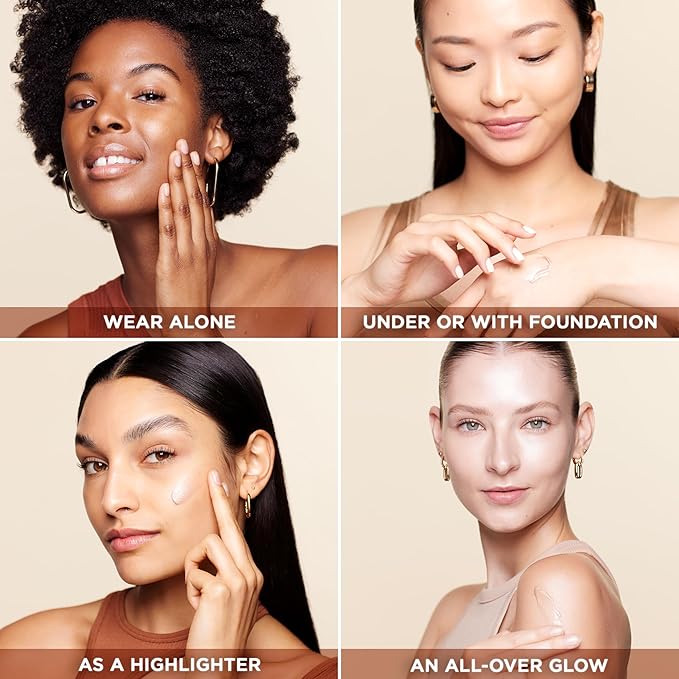 - Step 2: Lumi Glotion Hydrating Makeup Highlighter: Our glow lotion is infused with glycerin and shea butter for all day hydration; Available in 4 shades for all skin tones, the glow drops can be worn alone, under foundation, or on target areas for a more luminous effect.