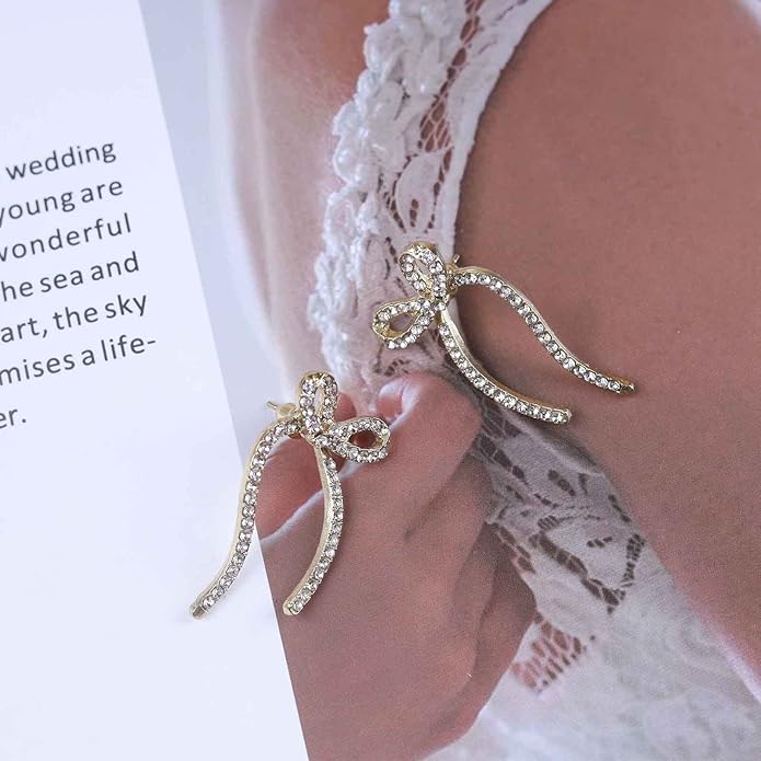 - Rhinestone bow stud earrings.Gift Occasion:The Simple Elegance and Intricate Detailing,From Casual to High Chic.Suitable for any Occasion, Such as Beaches, Event Parties, Dance Parties, Dates, .Daily Collocations,Banquet,Weddings, etc.