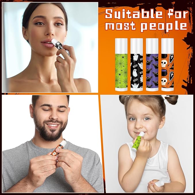 - Ample Quantity for Extended Use: with 80 lip balm included, 4 styles, 20 for each style, you'll have more than enough to last throughout the Halloween season; Share them with friends or keep them all for yourself, meeting your various needs