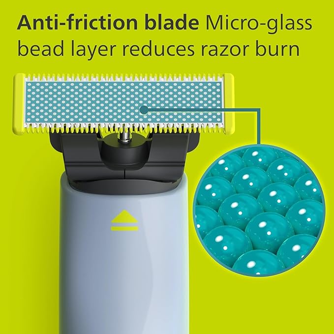 - Anti-friction blade with a layer of micro-glass beads, a protective plate on top of the cutter, plus rounded tips, makes the blade glide smoothly and protect skin from nicks and cuts while shaving.