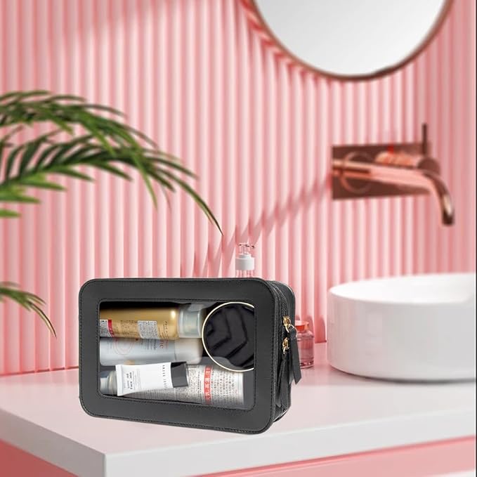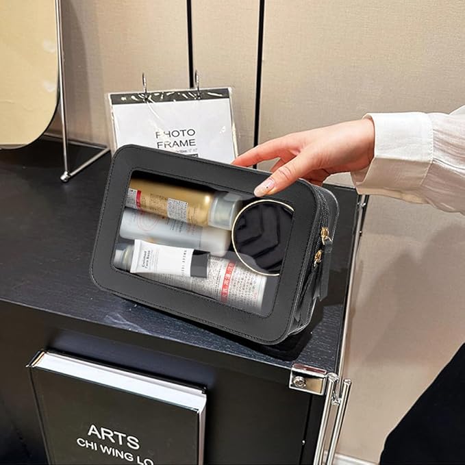 • Clear Design: Our clear toiletry bag is sleek and minimalistic look for your makeup accessories collection. And is designed with a clear PVC window,all items are clear at a glance, and you can quickly choose the cosmetics you need. Size:9.44“*6.1”*2.75“