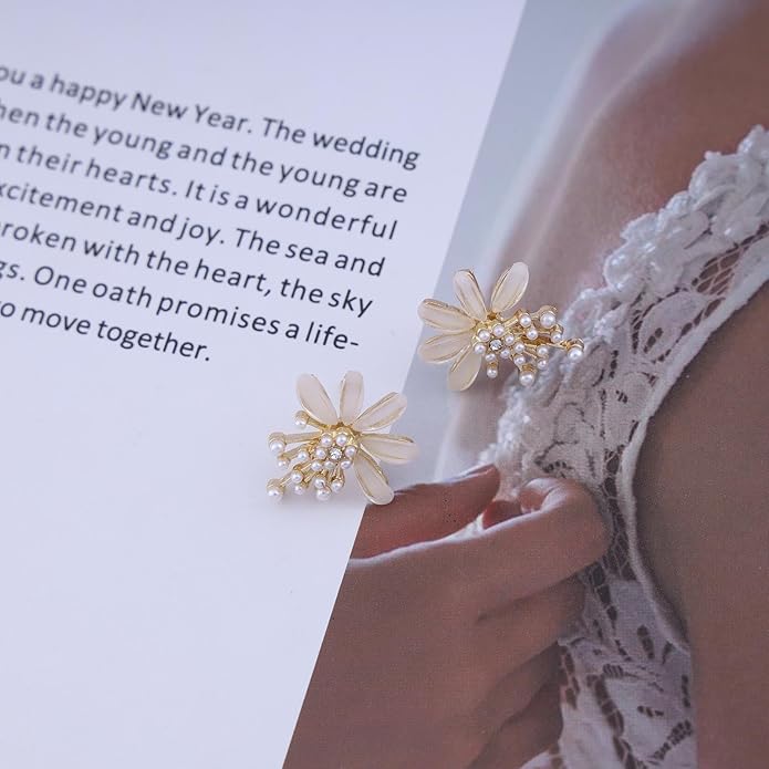 Vintage Flower Pearl Earrings Tiny Pearl Drop Earrings Enamel Flower Stud Earrings Gold Cluster Pearl Earrings Jewelry for Women
