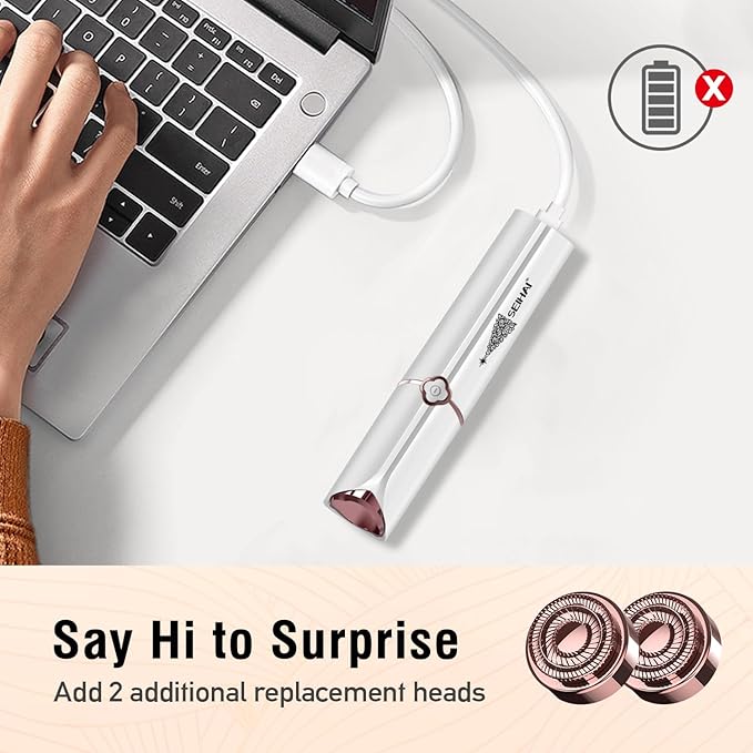 Facial Hair Remover for Women, SEIHAI Rechargeable Face Shavers for Women,Included 2 x Replacement Heads, Upper Lip, Chin, Face Hair Remover Peach Fuzz Remover