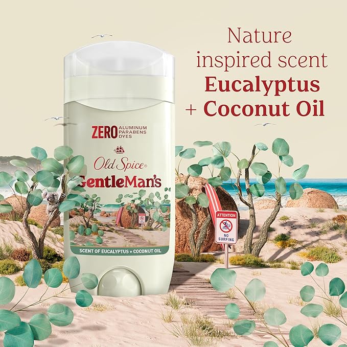 Old Spice GentleMan's Aluminum Free Dry Feel Deodorant for Men, 24/7 Lasting Freshness, Gentle on Skin with Skin Conditioners, Eucalyptus + Coconut Oil Scent, 3.0 oz (Pack of 3)