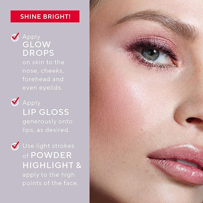 - Illuminizing 4-Piece Set: Get ready to shine bright with Mirabella’s Illuminizing Makeup Set. This makeup trio plus blender sponge contains everything you need to create a stunning, glowy look. The set includes 1 lip gloss, 1 glow liquid highlight drops, 1 powder highlight, and 1 blender sponge.