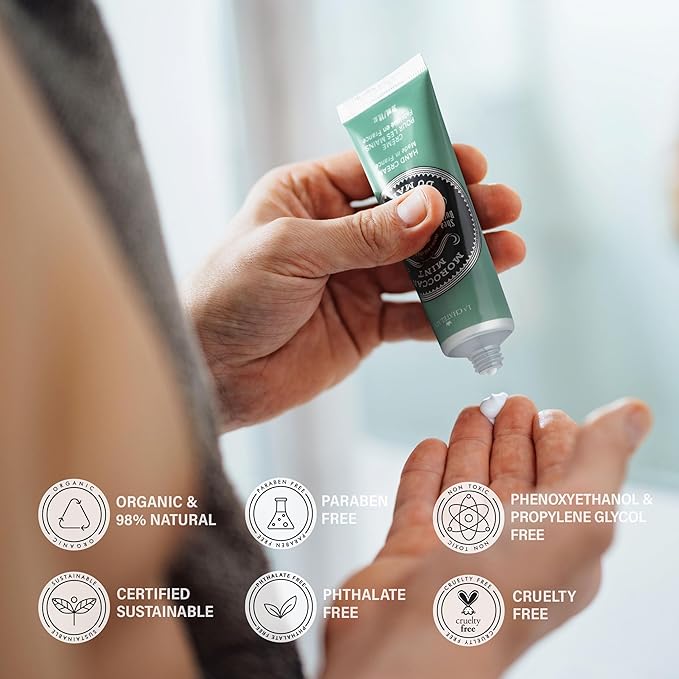 - INSTANT REPAIR HAND CARE: revitalize and protect with a unique formula rich in fair-trade Shea Butter, Vitamin E and organic Argan Oil. Antioxidants neutralize the effect of free radicals.