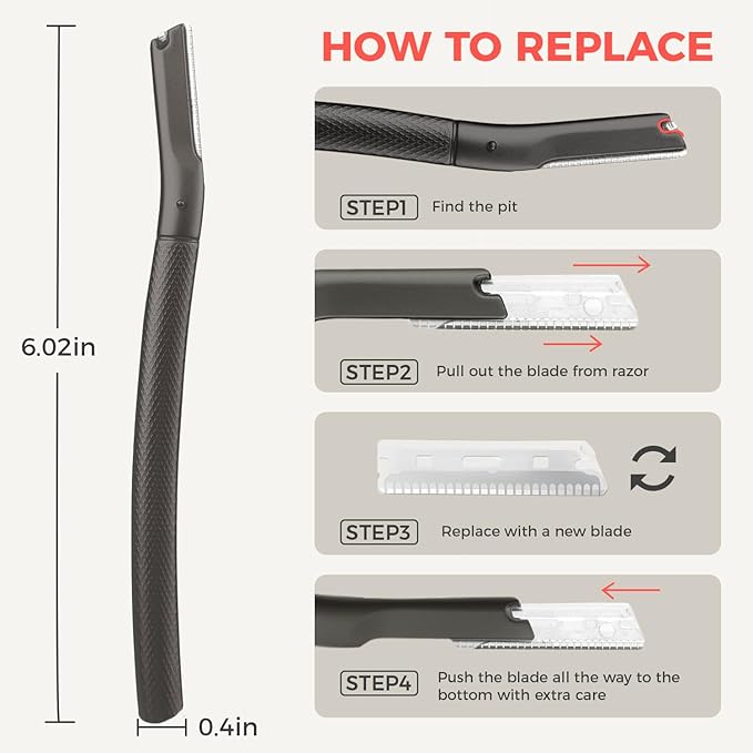- BEST AFTER-SALE SERVICE: Receive six reliable facial razor blades in each package, with a protective cover for safe storage. Built for longevity, these blades are ready for consistent, effective use. If you're not satisfied, we’ll provide a quick replacement for your peace of mind.