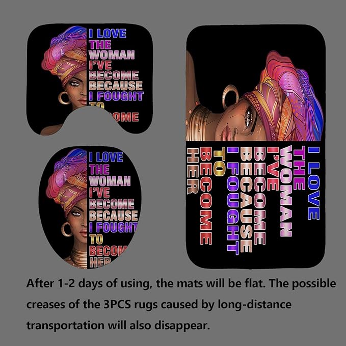 4PCS African American Shower Curtain Set, Black Shower Curtain, Black Girl Magic Afro Girl Black Pride Melanin Queen Black Women Bathroom Decor, Non-slip Bath Mat Inspirational Gifts for Women