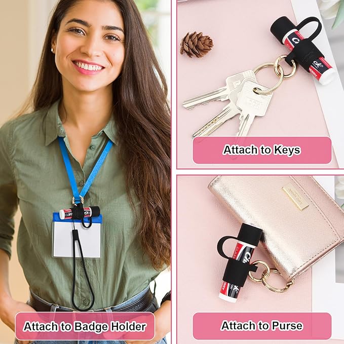 - π PORTABLE WRIST STRAP AND KEY RING - It comes with a wrist strap lanyard and golden key ring, so that you can attach the chapstick keychain holder to your keys, car keys, purse, badge holder, handbag and backpack by the key ring. Or you are able to take it on your wrist by the wrist strap lanyard.
