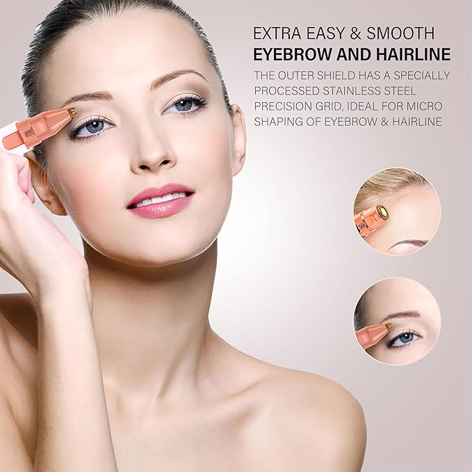 Facial Hair Removal for Women & Eyebrow Trimmer 2 in 1, Electric Shaver&Portable Peach Fuzz Hair Razor,Rechargeable Remover for Pubic Lips Face Ear Hair,Body Hands, Chin Beard with Light