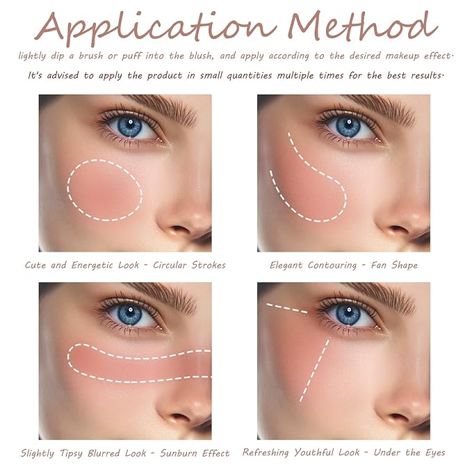 - Multifunctional Beauty Tool: The highly pigmented blush, used with the included brush, can be applied to the cheeks for a flushed appearance. Beyond serving as a blush, the palette doubles as an eyeshadow, making it a versatile addition to any beauty collection.
