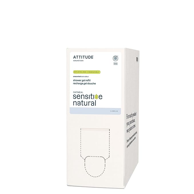 ATTITUDE Body Wash for Sensitive Skin, EWG Verified Shower Gel, Soothing Oat, Dermatologically Tested, Plant and Mineral-Based, Vegan Personal Care, Unscented, Bulk Refill, 67.6 Fl Oz