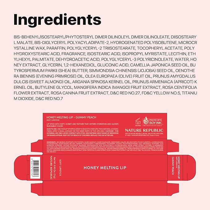 Nature Republic HONEY MELTING LIP (10 PEACH) SOFT LIP STICK, Hydrating Gloss, Moisturizing balms, Sheer tint, Shine & Glowy Finish, korean make up