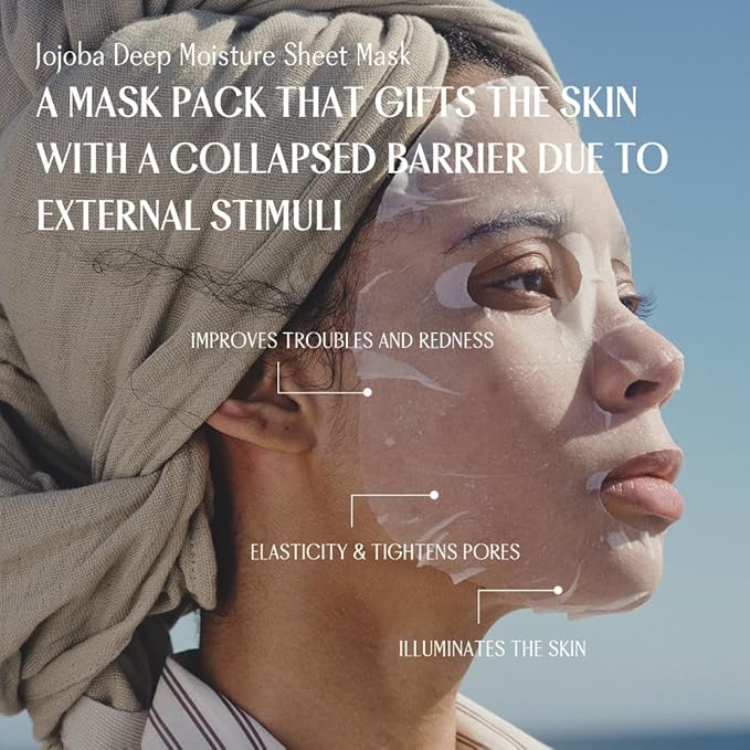 PINKWONDER Jojoba Deep Moisture Sheet Masks (5EA), Jojoba Oil and Hyaluronic Acid, Soothing for Dry and Sensitive Skin, Vegan Fabric, Korean Skincare