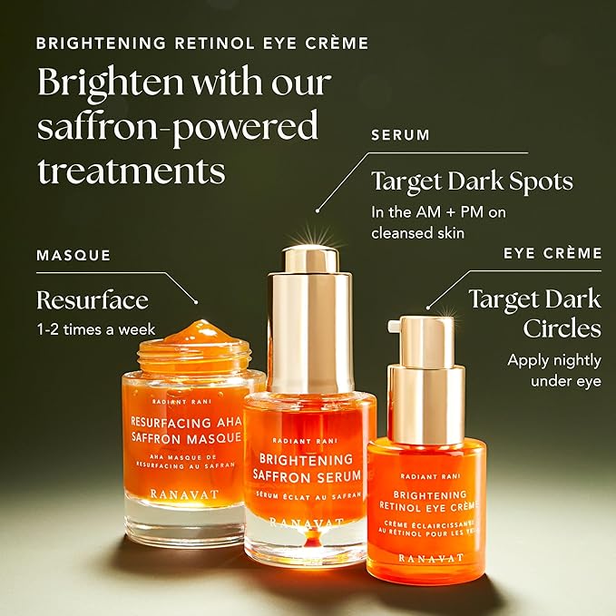 RANAVAT Brightening Retinol Eye Cream - Anti Aging Eye Cream and Dark Circle Corrector to Help Target Fine Lines - Enriched with Micro-Encapsulated Retinol, Bakuchi Seed, & Saffron (0.5 oz)