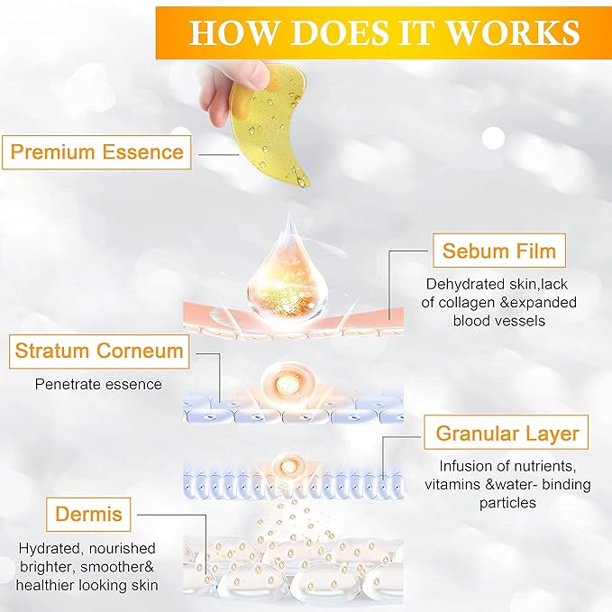 - Easy to Use: Clean your face and eyes with warm water, then put the eye patches under your eyes and press gently to secure them. Keep it for 20 minutes, and then remove the eye patches and gently pat the remaining essence. Twice a day or at least once a week.