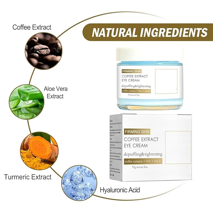 - Caffeine Eye Cream: Our eye cream is beneficial for repairing the skin layer by layer, providing long-lasting hydration and moisture, and presenting youthful skin. Radiant with youthful vitality.
