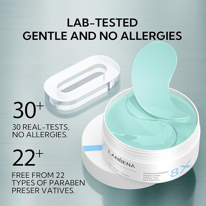 - 【LONG LASTING, DEEP MOISTURIZING】: LANBENA Eye Mask contains 8x Hyaluronic Acid, which helps to keep the skin hydrated and plumps up the skin around the eyes. Use for emergency eye hydration before makeup to make your makeup look better; can be used for daily maintenance to minimize the appearance of fine lines.