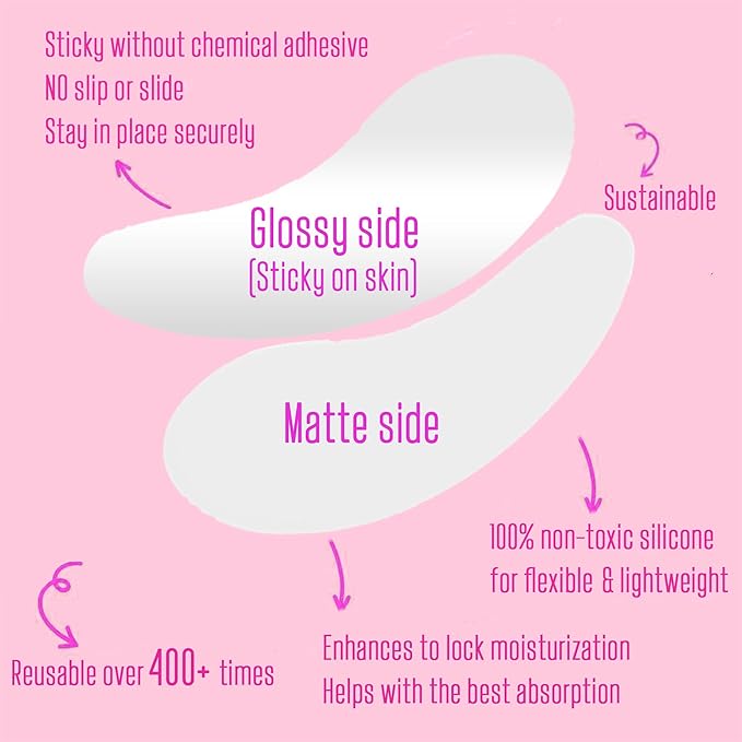 - 100% SILICONE UNDER EYE PATCHES - creates a vacuum-like seal between your favorite serum and your skin for 15 minutes to maximize the absorption, helping to “seal” in the ingredients and boost hydration