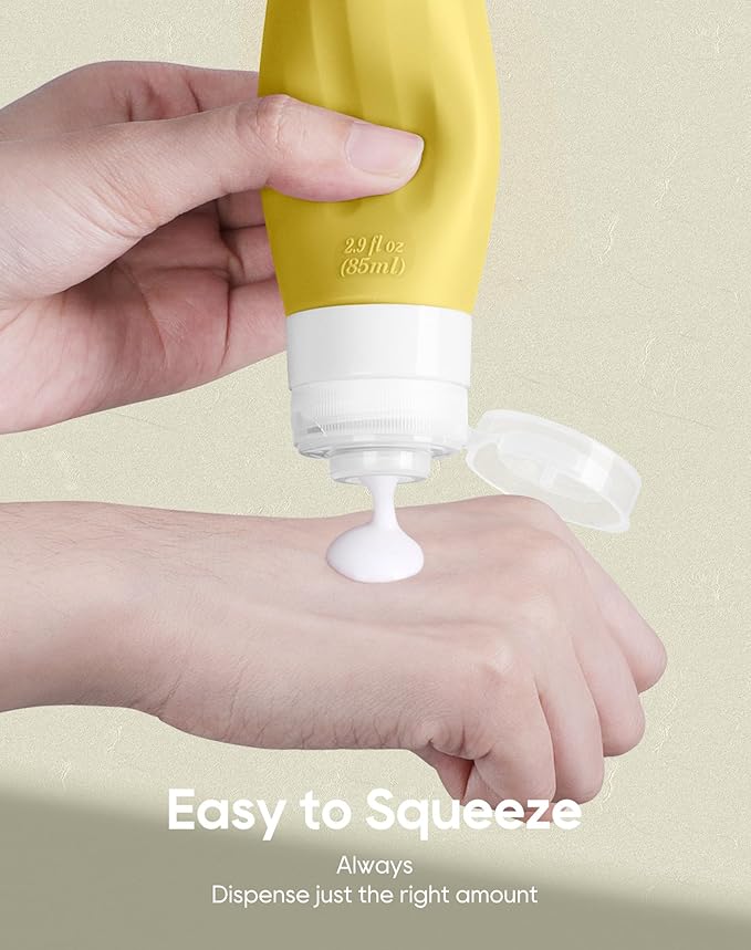 - SAFE SILICONE MATERIAL: Made of Food Grade BPA Free Silicone, this travel set is sturdy, soft, squeezable, flexible and reusable. Safe material guarantee that you can not only use them to store shampoo, conditioner, face soap, sunscreen, creams, lotion or etc, but also safe for food, various seasonings. Soft silicone body make you squeeze out contents easily