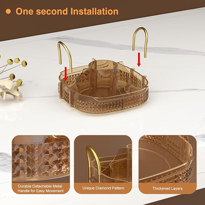 - 360 Degree Rotation& Easy to Install:➤Reinforced steady base rotates smoothly and silently, the rotating makeup organizer is easy access to all of your make-up in seconds.Less installation step are required other than inserting metal rack and handle,do not worry about repeated disassembly to shorten the lifetime of the makeup organizer.