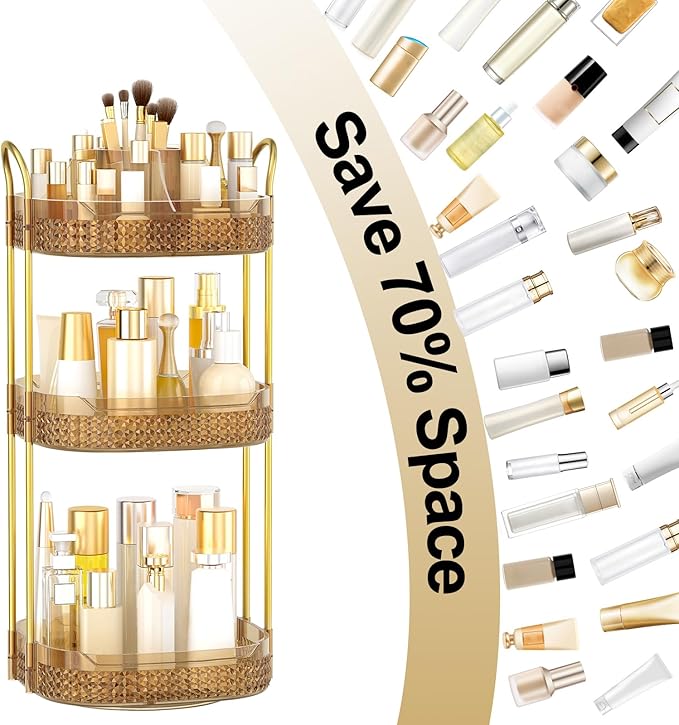 - Spinning Organizer: Truly find items in a second with the 360 rotating makeup organizer, all you have to do is turn it around and the items on the inside are easily accessible. Gentle and stable turntable, no need to worry about the cosmetics being knocked over while spinning