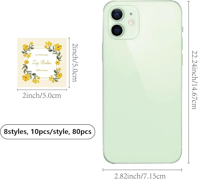 - SIZE: square custom lip balm diy label sticker about 1.96Γ1.96inch (5x5cm), 8 styles, 10pcs/style, 80pcs/set.