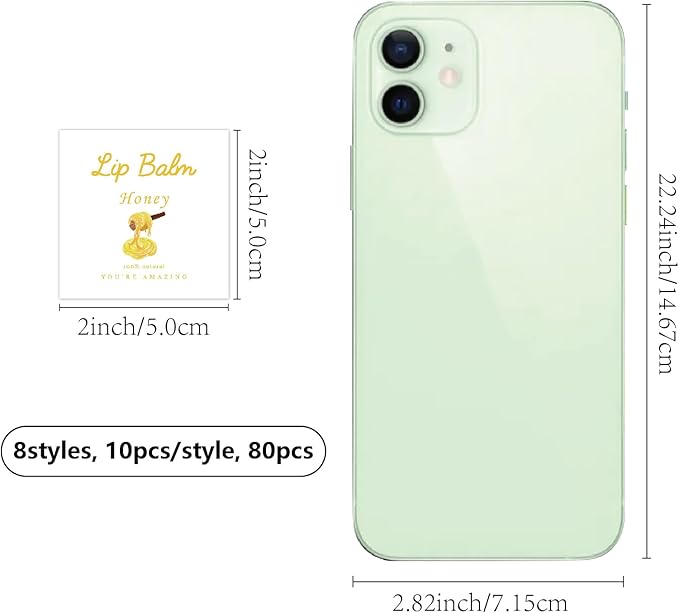- SIZE: square custom lip balm diy label sticker about 1.96Γ1.96inch (5x5cm), 8 styles, 10pcs/style, 80pcs/set.