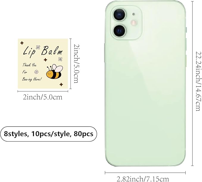 - SIZE: square custom lip balm diy label sticker about 1.96Γ1.96inch (5x5cm), 8 styles, 10pcs/style, 80pcs/set.