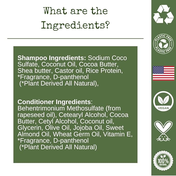 Shampoo Bar and Conditioner Set with Travel Case | Strengthen and Repair Dry Hair | Coconut, Castor Oil, Shea Butter | Made in USA | 2-pk