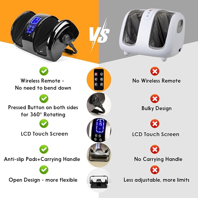 - 3. Easy to use by its clear visible LED screen and touch buttons control, also a wireless remote for no bending down any more! Wave goodbye to foot discomfort and unlock the secret to happy feet