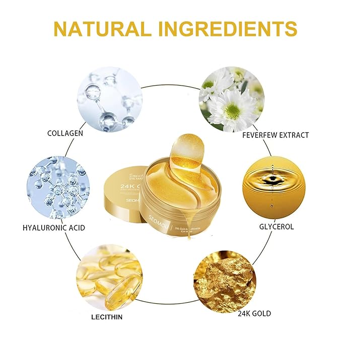 Under Eye Patches, Eye Mask, Eye Patches for Puffy Eyes and Dark Circles Reduce Eye Bags Fine Lines Smooth Wrinkle, Anti-Aging,Hydrating, 24K Gold Eye Skin care Pads with Collagen (60PCS)
