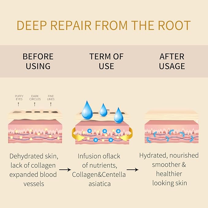 - SAFE AND EFFECTIVE - Our eye mask is formulated with collagen, 24K gold and a variety of hyaluronic acids that quickly penetrate into the basal layer of the skin. This deep repair promotes optimal blood circulation while remaining 100% safe and free of side effects.Tunbot's Dark Circles and Eye Bags Eye Mask is designed to be gentle yet effective for all skin types, including dry, oily, sensitive and combination skin. With just one Gold Eye Mask, you can replenish your skin with essential moisture and nutrients.