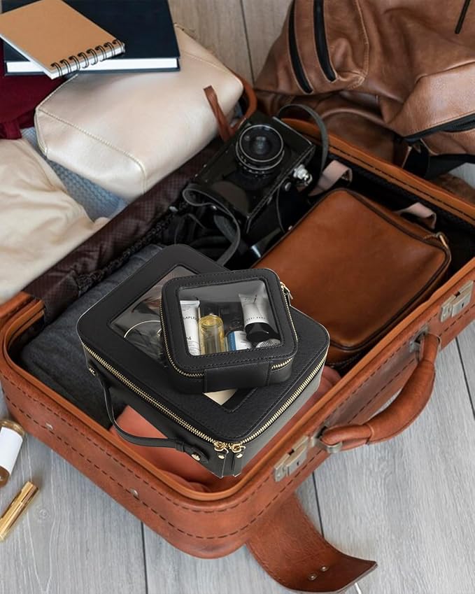• Clear Design: Our clear toiletry bag set is sleek and minimalistic look for your makeup accessories collection. And is designed with a clear PVC window,all items are clear at a glance, and you can quickly choose the cosmetics you need. Large: 9.44“ x 6.1” x 2.7”, Mini: 5'' x 4.7'' x 2''
